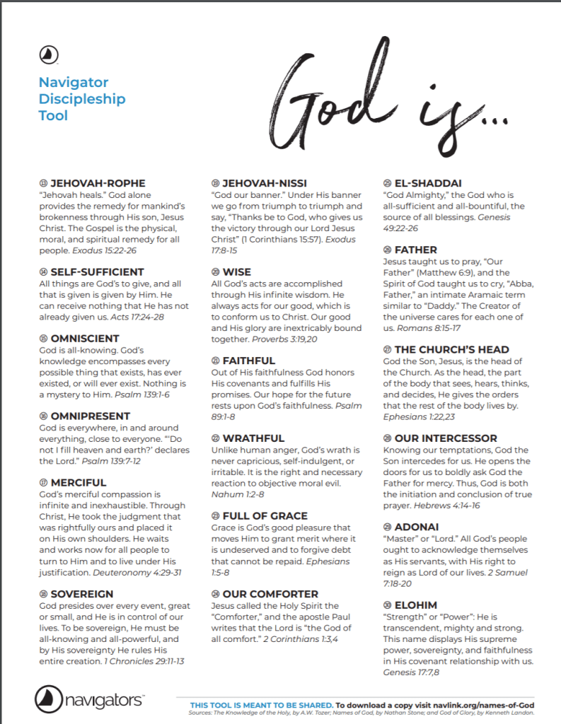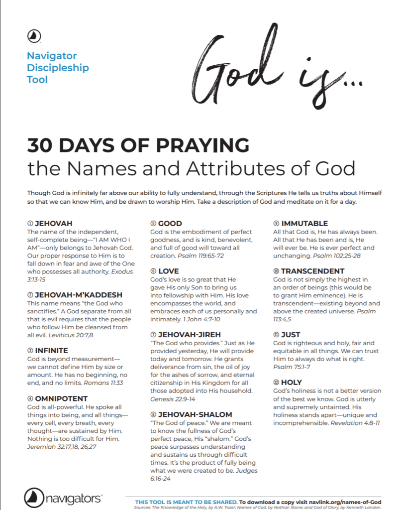 As the days, months and now years have gone by, this single-page calendar, 30 Days of Praying the Names and Attributes of God, has become a lifeline to me while I navigate the waves in this sea of trials.