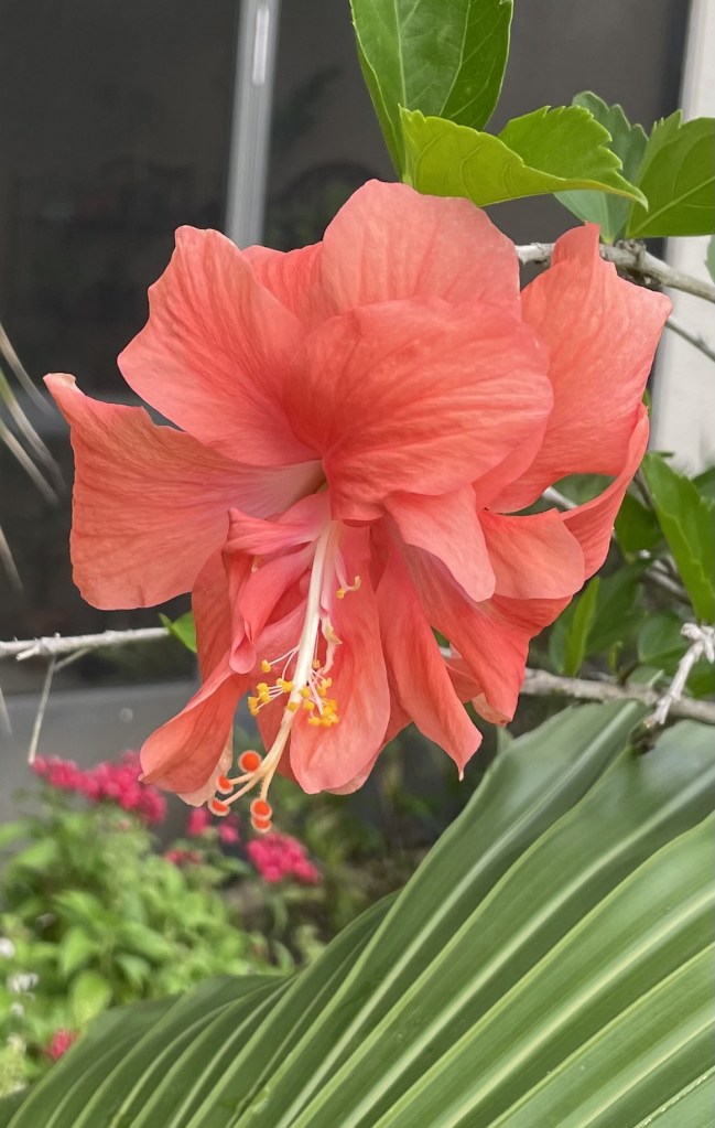 Amazing that the Hibiscus survived and bloomed today! Hallelujah.